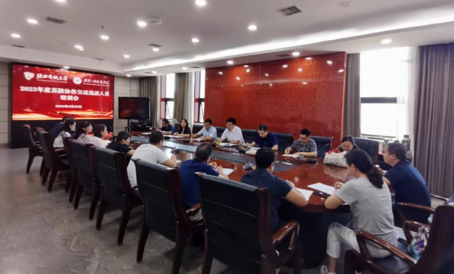 培训会上,梁文侠传达上级《关于做好2023年度苏陕协作专业技术人才选派交流工作的通知》精神,介绍了2023年度苏陕协作交流选派工作。教务处处长付琪介绍了江苏经贸职业技术学院基本情况,详细介绍了此次交流学习的工作安排,对苏陕协作交流选派教师进行了培训。