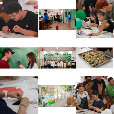 在“端午奇妙游”活动中,师生一起现场制作香囊、编织五彩花绳、包粽子,共同参与端午知识竞答、投壶游戏等趣味活动,切身体验传统端午节的浓厚氛围。