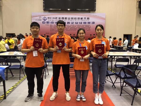 2018年5月25日在刚刚落下帷幕的“2018年全国职业院校技能大赛”中职组沙盘模拟企业经营赛项中由金融与保险学院学生贾程龙、张雪韵、付裕晞、杨卓凯组成的代表队顽强拼搏、发挥出色,取得全国第八名的好成绩,荣获二等奖。魏云霞、桑永超两位指导老师密切配合、悉心指导,充分展现出我校教师良好的专业素养和精神风貌。