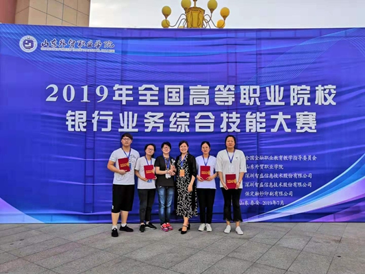7月4日,由全国金融职业万博maxbetx 指导委员会主办的2019年全国高等职业院校银行业务综合技能大赛在山东泰安举行,来自全国的111支代表队共444名选手参加了比赛。学校金融与保险学院马彦、张建红两位老师指导的2018级金融管理专业杨力、吕婉莹、王婷婷和梁露露4位同学组队参赛,获团体二等奖。