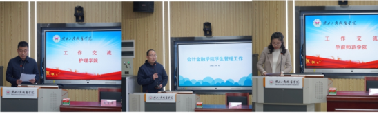 会上,党委学生工作部和校团委负责同志就年度工作计划作了解读和说明,会计金融学院、学前师范学院和护理学院做了交流发言。