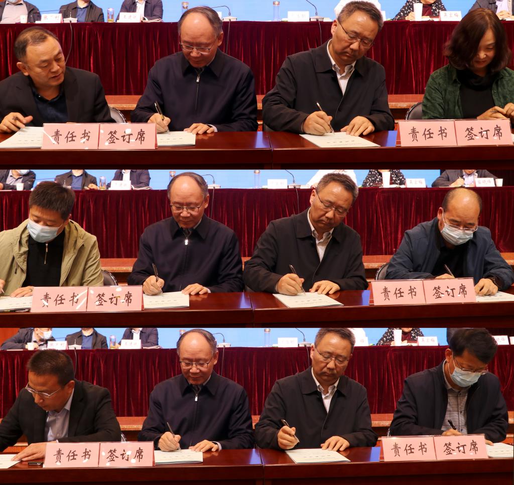 会上,王家春、龙治刚代表学校党委与职能部门、二级学院负责人代表签订了2023年安全稳定目标责任书。全体与会同志一同观看警示教育影片。