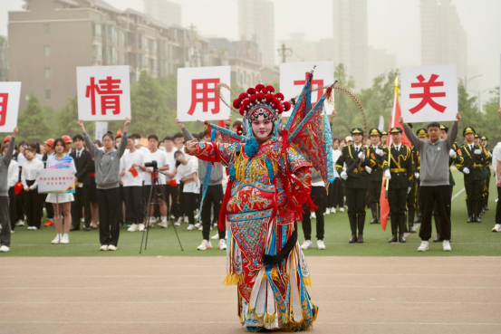 在国旗的引导下,国旗队方阵、裁判员方阵、二级学院、工会各分会的师生方阵,身着统一服装,喊着嘹亮的口号,迈着矫健的步伐入场。各二级学院结合自身专业特点,或穿着青春洋溢的运动服、或装扮古风戏曲行头,翻转手牌、横幅及旗帜,进行了风采展示。有的表演活力四射的韵律操,洋溢着健康新活力;有的表演街舞,用律动诉说激情与澎湃。5架无人机在空中交错盘旋,在空中作出筋斗、翻转、拉出五彩丝带,点亮整个天空,引得在场师生阵阵惊叹与欢呼。
