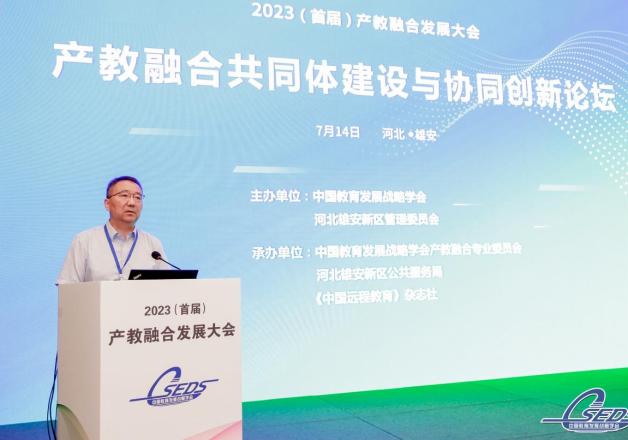 7月13-14日,由中国教育发展战略学会、河北雄安新区管理委员会主办的2023(首届)产教融合发展大会在河北雄安新区举行。教育部职业教育与成人教育司二级巡视员、教育部继续教育办公室主任刘英,中国教育发展战略学会产教融合专业委员会理事长、清华大学继续教育学院党委书记刁庆军等出席会议,全国各高校、职业院校、行业企业代表,中央媒体700余人参加大会。校长龙治刚应邀出席并发言。