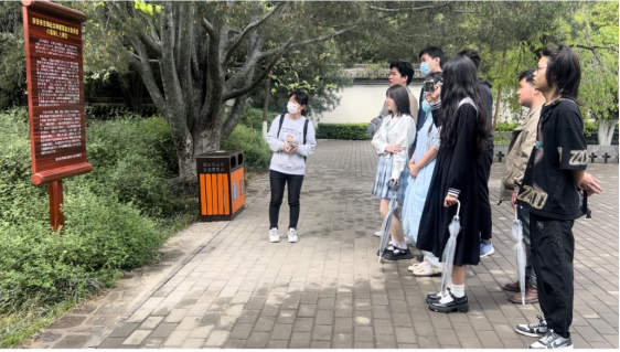 进入景区,学生按照日语课程中所学知识和准备的关于青龙寺的历史、遗迹、空海大师生平以及樱花品类中日双语解说词,沿着青龙寺的蜿蜒小路,分组进行景区介绍。学生还按照本次发布的实践考查要求,将青龙寺遗址的“花见雁塔 樱动全城”国际樱花节文旅结合活动进行记录和学习,在老师的带领下,一同探讨樱花节的相关新闻和宣传渠道以及商品结合要素,及时记录,在活动后撰写专业认知实践报告。