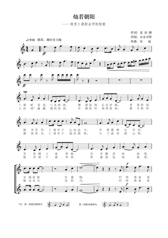 校歌由校党委书记龙治刚等集体作词,西安音乐学院教授吴延作曲,以激昂雄壮的旋律、凝练厚重的歌词,深情诠释了学校扎根三秦、为党育人、为国育才的办学使命,彰显了“厚德强技、敬业有为、乐学勤思、实践创新”的育人理念。